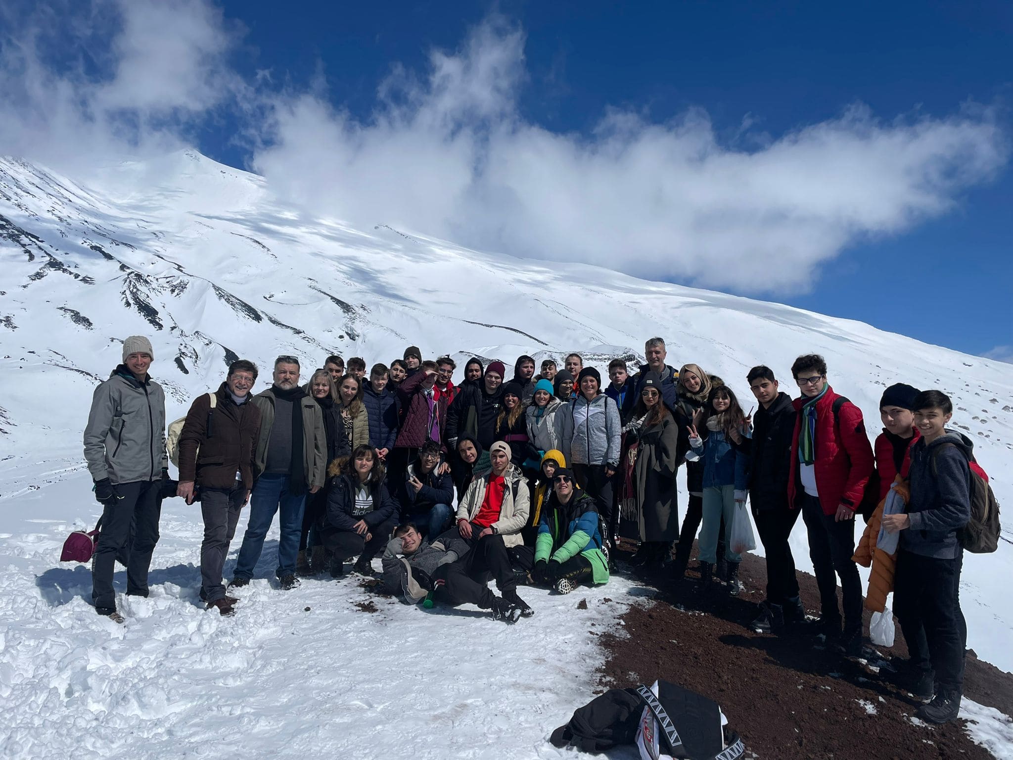 Expediția culturală a continuat cu o excursie la Vulcanul Etna, pe 22 martie, unde un ghid montan le-a vorbit elevilor și profesorilor despre originile celui mai înalt vulcan din Europa, despre structura geologică a formelor de relief din zonă, dar și despre vegetația locală. Drumeția prin zăpadă până la Craterul Silvestri a făcut că experiența să fie și mai palpitantă pentru întregul grup format din 40 de liceeni și 14 profesori din Italia, România și Turcia. După-amiază, ieșirea culturală a continuat cu vizitarea splendidului oraș Taormina, cocoțat pe un versant, ce are atât vedere la Marea Ionică, cât și priveliști impresionante spre Vulcanul Etna. Pe drumul de coastă care șerpuiește pe lângă mare, în drum spre Taormina, am admirat din autocar, Isola Bella, aflată în apropierea țărmului, un cadru de vis care întregește imaginea exotică a Siciliei.