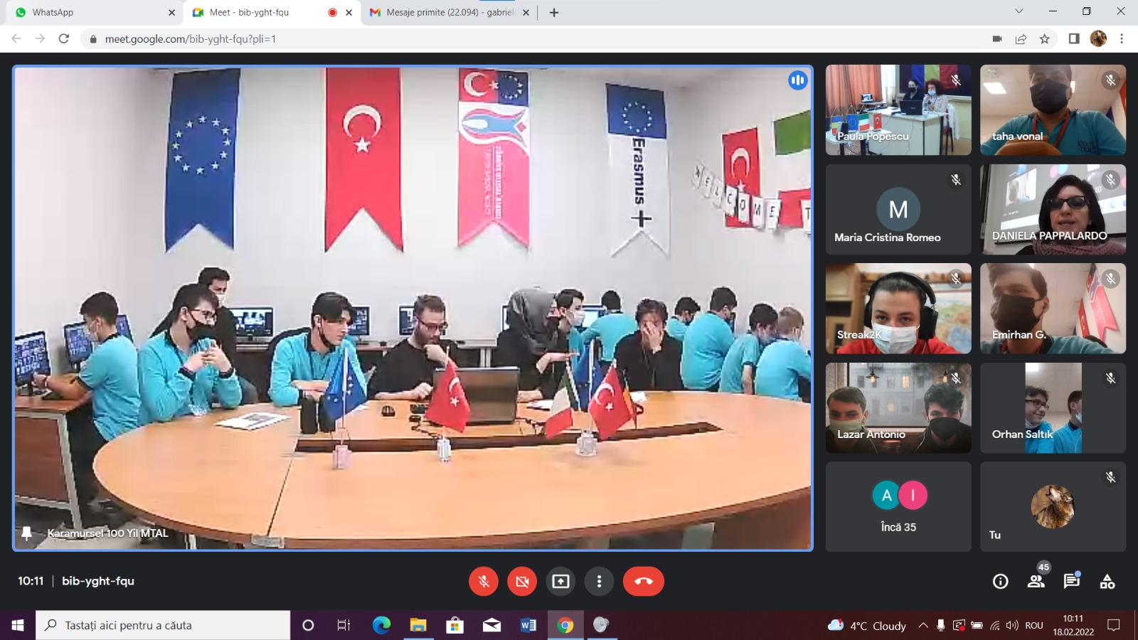 Colegiul Tehnic “Edmond Nicolau” din Focșani a găzduit în perioada 17-23.02.2022 mobilitatea virtuală C2 în cadrul proiectului Erasmus+ de parteneriat strategic în domeniul educației școlare “SCHOOL FOR S.K.I.L.L.S. - SCHOOL alliance FOR Soft and Key Competences În Lifelong Learning of Schools” (2019-1-IT02-KA229-062236_2) la care au luat parte 20 de elevi și 8 profesori din liceul „Karamürsel 100. Mesleki ve Teknik Anadolu Lisesi” din Karamürsel, Turcia, precum și 9 liceeni și 5 profesori reprezentând școala italiană I.I.S.S. „G. Ferraris” din Acireale, Sicilia. În prima zi de activități, pe 17 februarie, cei 19 elevi români de la clasele a IX-a A, B, C, E, a X-a A, C, E, a XII-a A și D însoțiți de 5 cadre didactice au făcut cunoscut liceul nostru cu ajutorul unui videoclip și a unui material PowerPoint în care au ilustrat laboratoarele pentru studiul disciplinelor teoretice și atelierul școlar, săli de clasă, activități școlare și extrașcolare, proiecte europene derulate, profilurile liceului și ale școlii profesionale, cu diversele calificări pe care le oferă Colegiul Tehnic „Edmond Nicolau”.